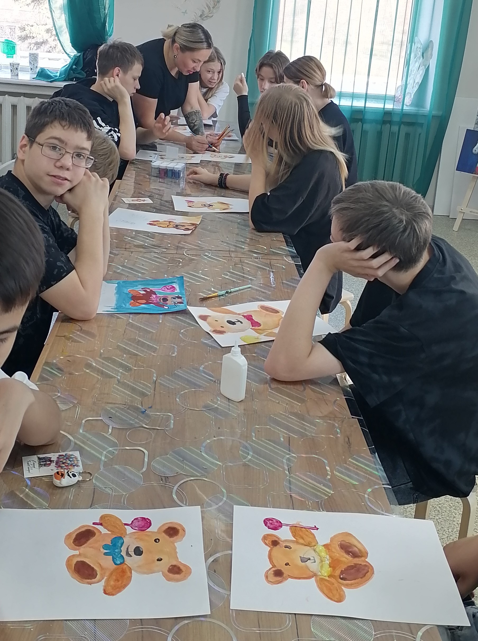 Дети в очень доброжелательной и теплой обстановке познакомились с новым способом изобразительного творчества – рисование по сырой бумаге. Хотя все ребята выполняли одно задание, результат творчества получился очень разнообразным. Все рисовали игрушечного медведя. Но у кого-то он получился грустным, у кого-то веселым, получились и «пухленькие» медвежата и «худенькие», медвежата–сладкоежки и спортсмены хоккеисты. В конце творческого мастер-класса дети поделились своими впечатлениями и выразили желание продолжать сотрудничество с изостудией.