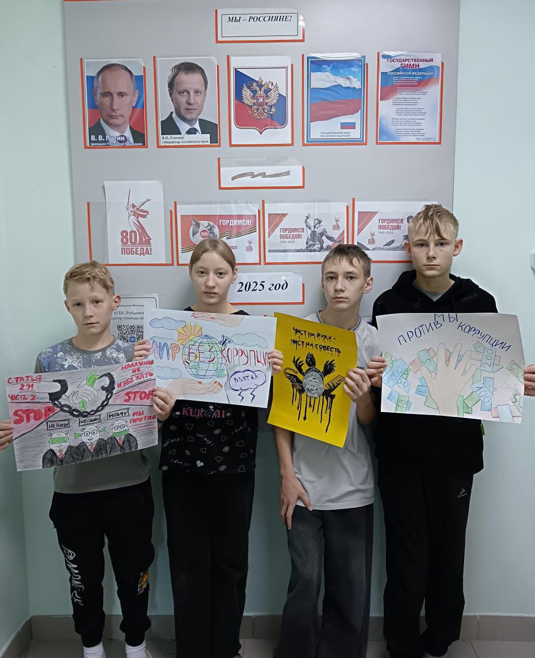 Воспитанники «Рубцовского центра помощи детям, оставшимся без попечения родителей» приняли участие в конкурсе рисунков «Мы говорим: «Нет!» коррупции», которое ежегодно проводится в целях формирования антикоррупционного общественного мнения, направленного на негативное отношение к фактам коррупции, развития творческой инициативы и конструктивного творческого мышления подрастающего поколения. Организатором конкурса выступает следственное управление Следственного комитета Российской Федерации Алтайского края. В творческих работах, направленных на краевой этап, дети отразили проблемы коррупции и взяточничества, выразили своё негативное отношение к коррупции, отразили различные способы борьбы с ними.