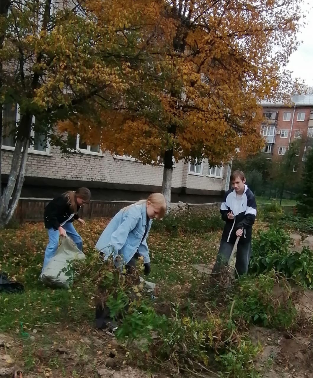 Сейчас ребята наводят порядок на огороде, на цветочных клумбах, убирают однолетние растения, выкапывают клубневые цветы для зимнего хранения, обрезают и утепляют розы, чтобы они смогли благополучно перезимовать и радовать всех на следующий год своим цветением и ароматом.