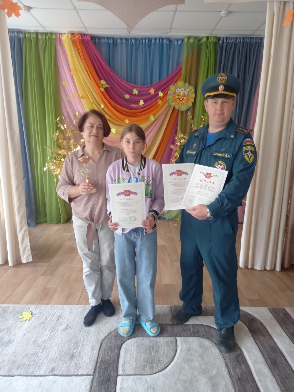 За участие в данном конкурсе в этом году ребята от имени организаторов получили заслуженные награды. 26 сентября представитель МЧС по Алтайскому краю в г. Рубцовске вручил нашим ребятам Диплом IIIстепени за победу в краевом конкурсе в номинации «Технические виды творчества» и сертификаты участников.
